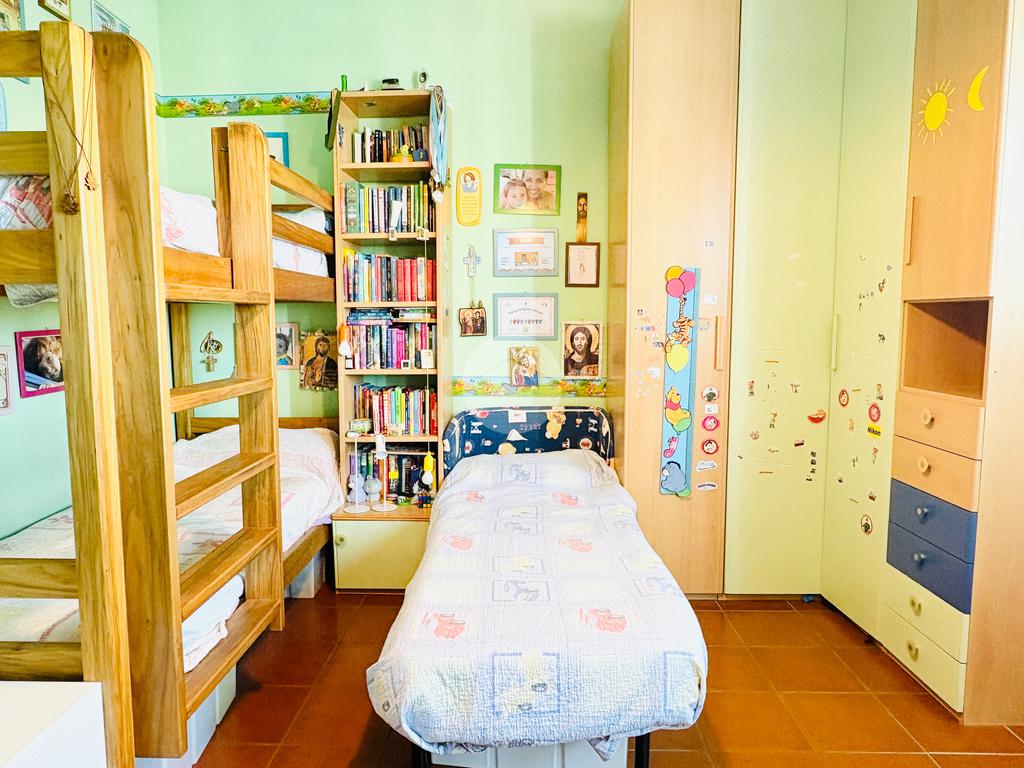 La zona notte offre due camere da letto, ideali per una coppia con bambini o per chi desidera avere uno studio o una stanza per gli ospiti. Il bagno, ristrutturato con cura, completa la parte più intima della casa.