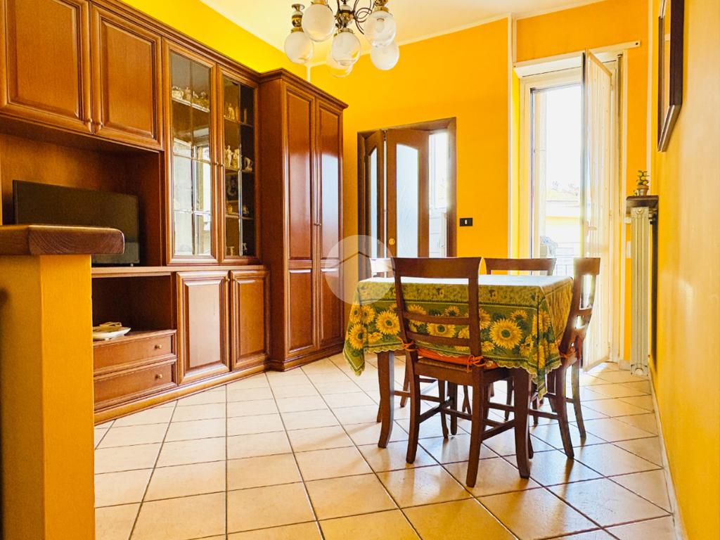 La zona giorno offre un comodo tinello con ampio cucinotto, dal quale si accede al balcone che affaccia sul cortile interno, garantendo tranquillità e riservatezza. Completa l’alloggio un comodo ripostiglio posto in fondo al disimpegno, ideale per organizzare al meglio gli spazi.