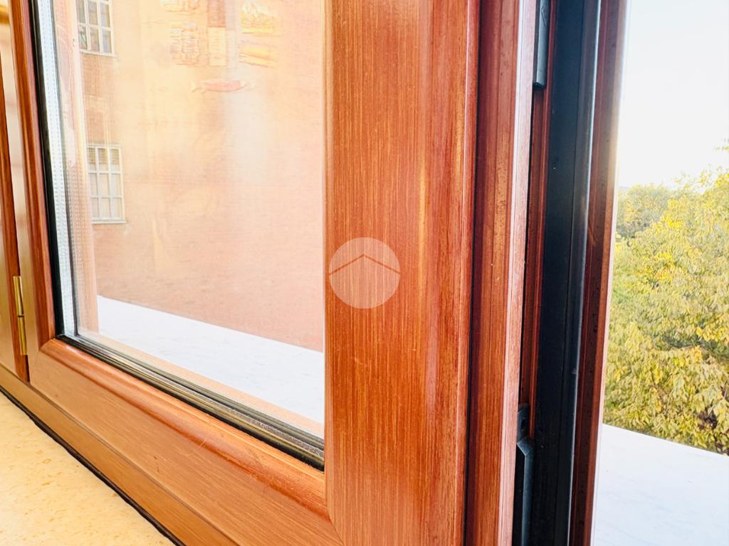L’immobile è dotato di porta blindata, infissi in legno con doppio vetro, serrande elettriche, impianto antifurto, pavimentazione uniforme e porte interne in legno con vetro satinato, elementi che contribuiscono a creare un ambiente elegante e funzionale. Il riscaldamento è centralizzato con teleriscaldamento e sono presenti due condizionatori.