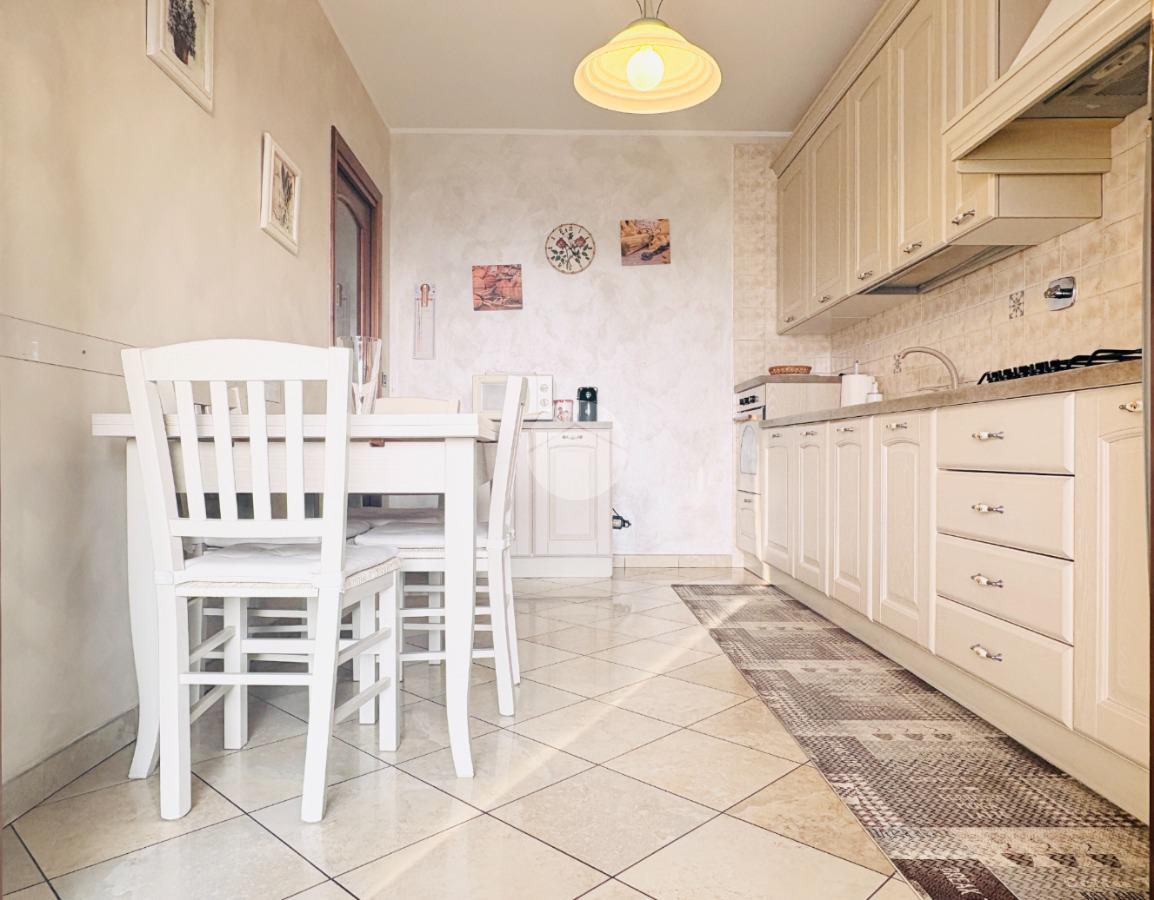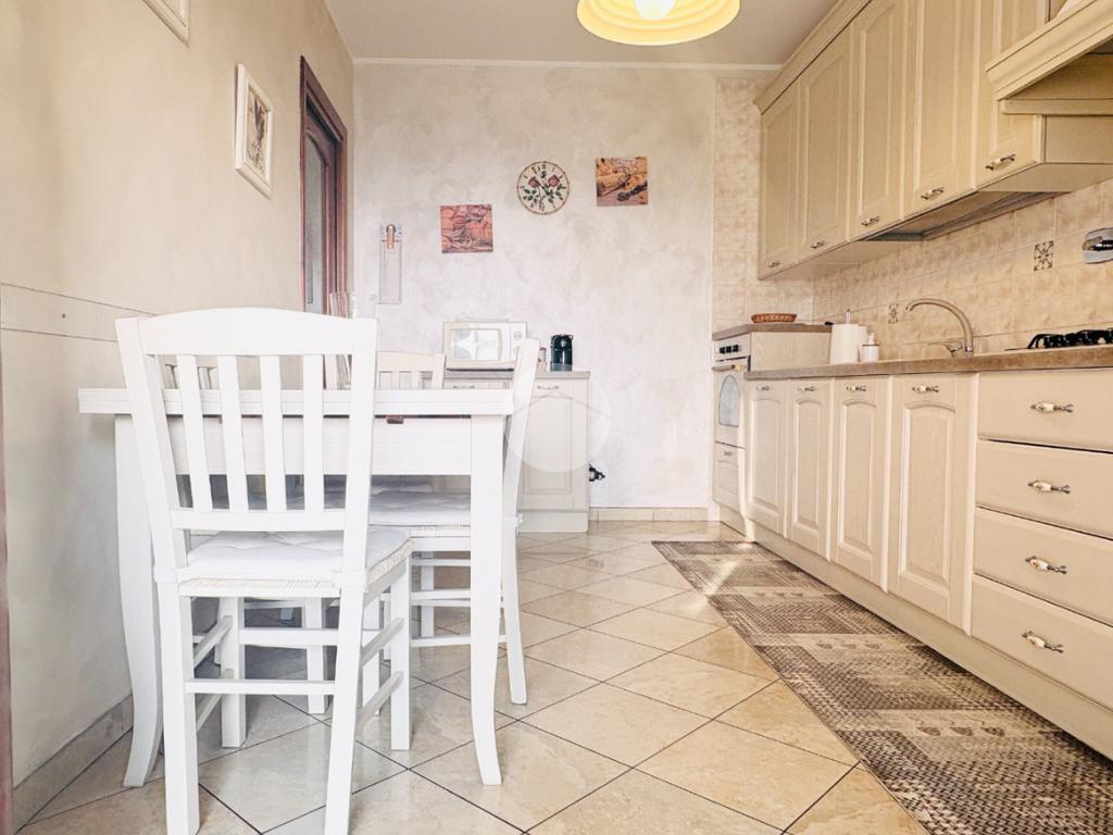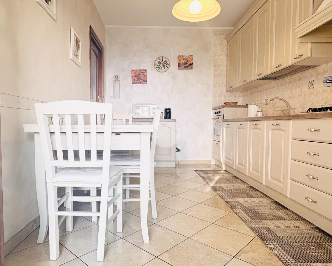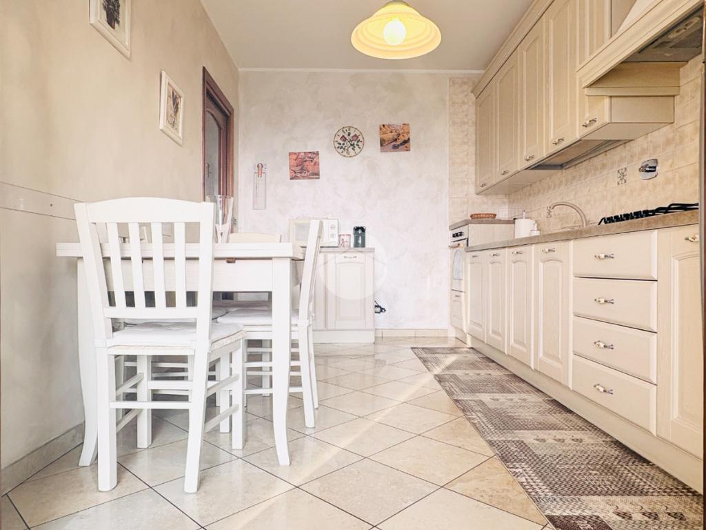 L’ingresso living si apre su una sala ampia e accogliente, con accesso diretto al grande terrazzo panoramico: uno spazio da vivere davvero, ideale per cene all’aperto, momenti di relax o semplicemente per godersi il panorama in totale tranquillità. La cucina abitabile, anch’essa con uscita sul terrazzo, è perfetta per la quotidianità di una famiglia e per chi ama ambienti funzionali ma ben distinti.
