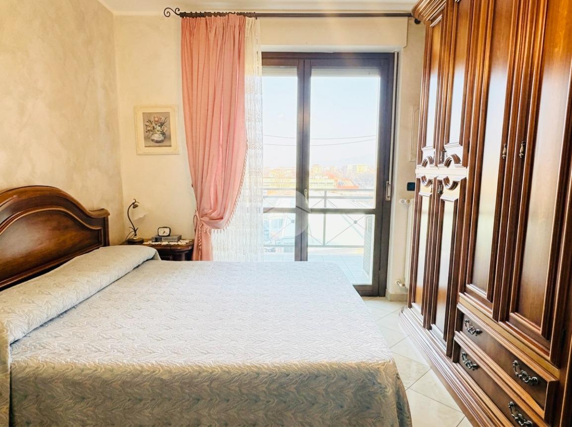 La zona notte è ben distribuita grazie al disimpegno, al comodo ripostiglio e al bagno spazioso con vasca. La camera matrimoniale, di generose dimensioni, dispone di un terrazzino privato con vista aperta su Superga, un angolo intimo e riservato dove la luce e il panorama diventano protagonisti.