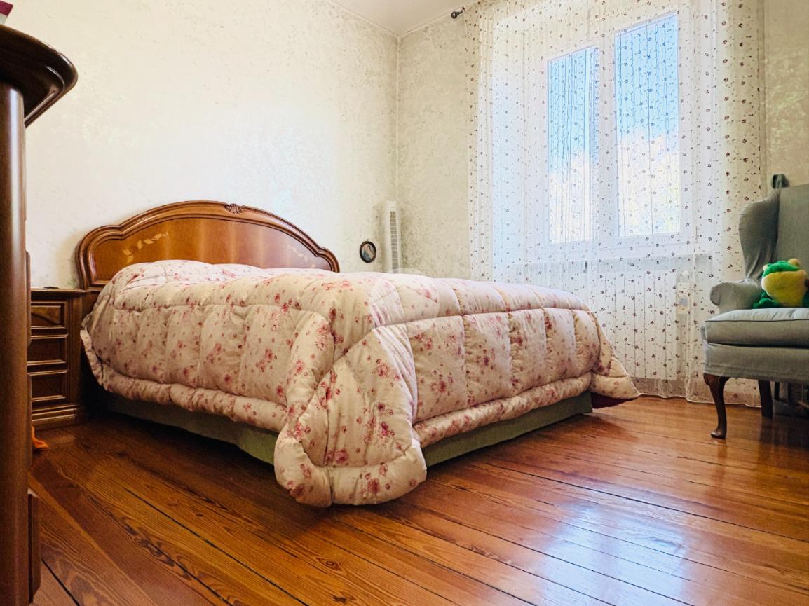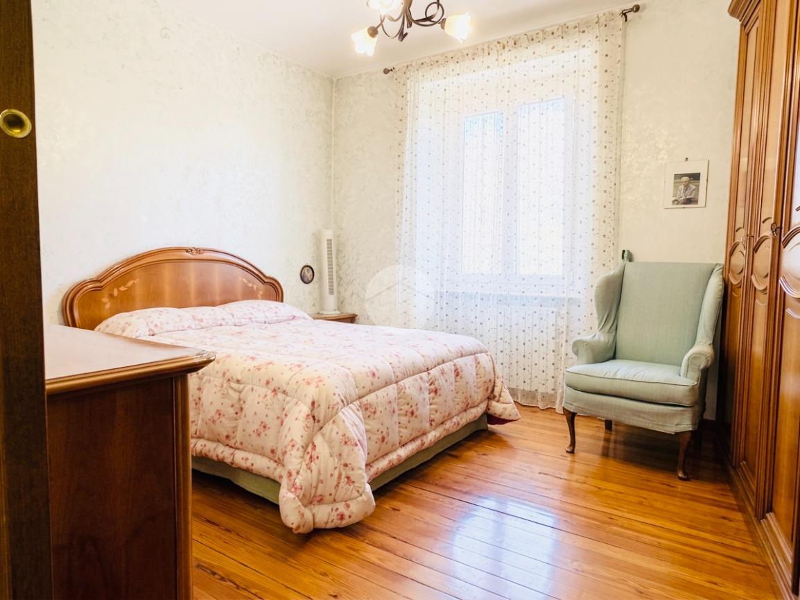 La zona notte, ben separata grazie al disimpegno, ospita due camere da letto di generose dimensioni. Una di queste è valorizzata da un elegante parquet in legno che dona calore e raffinatezza all’ambiente. Completa la proprietà un comodo armadio a muro, soluzione pratica e intelligente per organizzare al meglio gli spazi.
